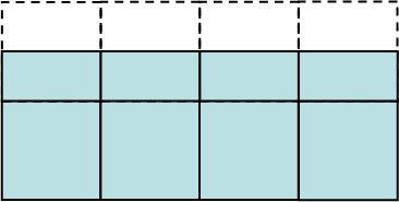 ↑図のように、1段目は4個おけますが、 2段目は積み木の数が足りません。 そこで、上の2個の積み木を半分に切って 「どこも同じ高さに」なるようにきれいにならべます。
